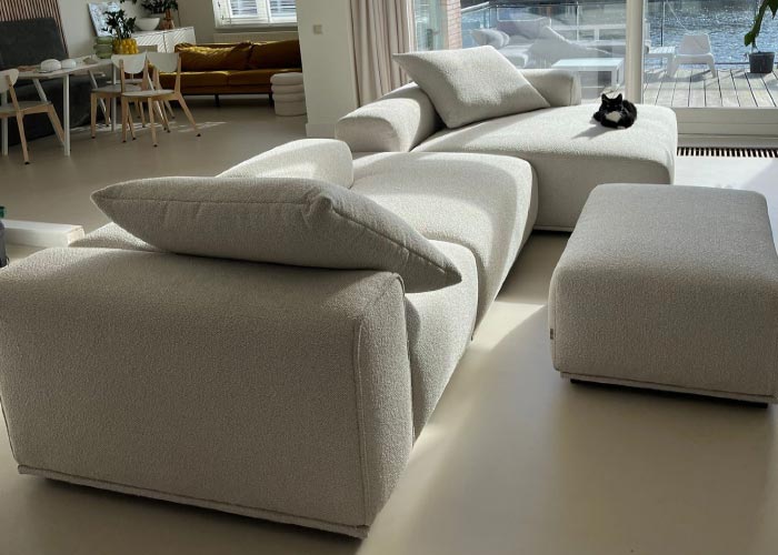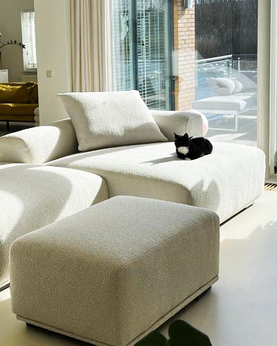 Deze sfeervolle en warme elementen bank is als een omhelzing van comfort en gezelligheid in uw interieur. Met zijn elegante en afgeronde vormen met zachte en vloeiende contouren is het een plek waar u direct naar verlangt zodra u de ruimte binnenstapt en waar u kunt ontspannen en genieten van aangename momenten.